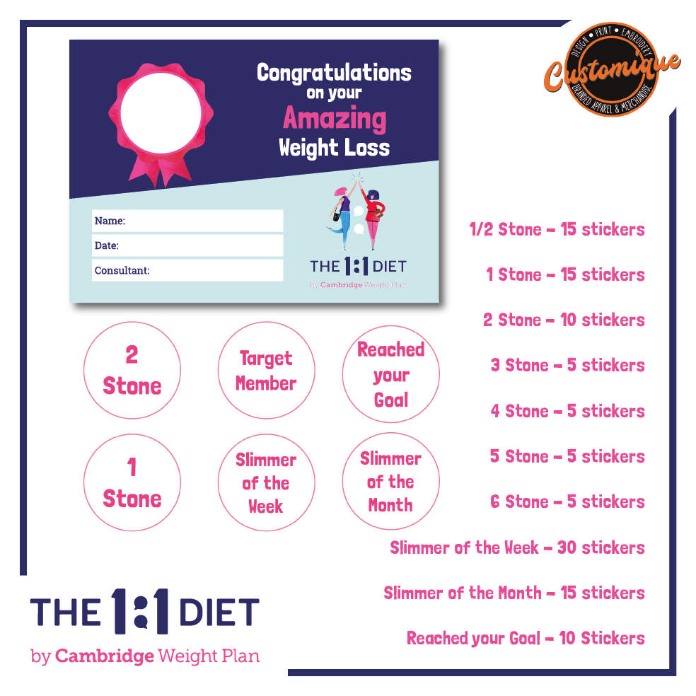 The 1:1 Diet - 100 Weight Loss Certificates & 120 Stickers Pack